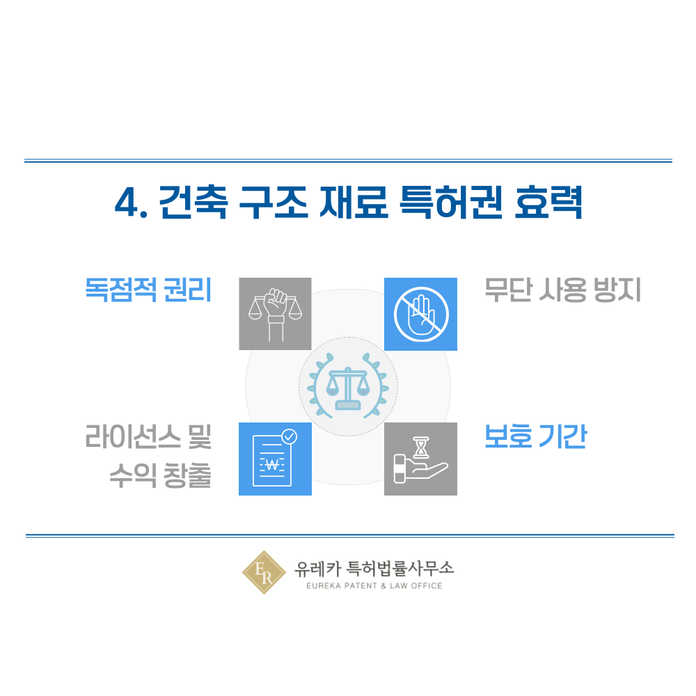 건축 구조재, 고로슬래그, 철골, 철근, 목구조 관련 기술이 특허로 등록되면 발명자는 독점적 권리를 가집니다.