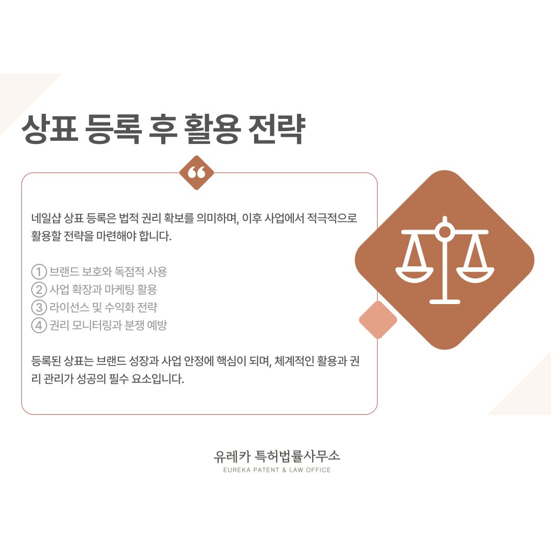 등록 후 상표는 단순한 법적 증서가 아니라, 브랜드 성장과 안정적 사업 운영을 위한 핵심 자산입니다.