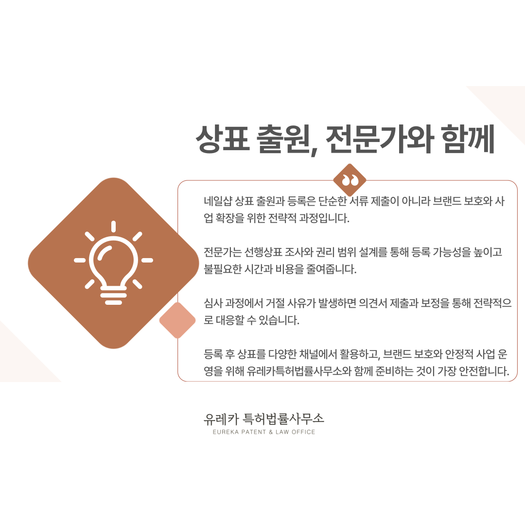 네일샵 브랜드를 안정적으로 보호하고 싶다면 이 단계에서 전략적으로 접근하는 것이 가장 안전합니다.