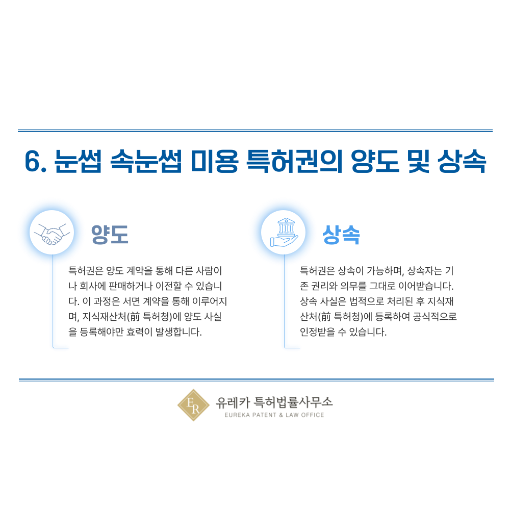 6. 눈썹 미용, 속눈썹 연장, 리프팅, 펌, 브로우 라미네이션, 틴팅, 왁싱 기술 특허권의 양도 및 상속