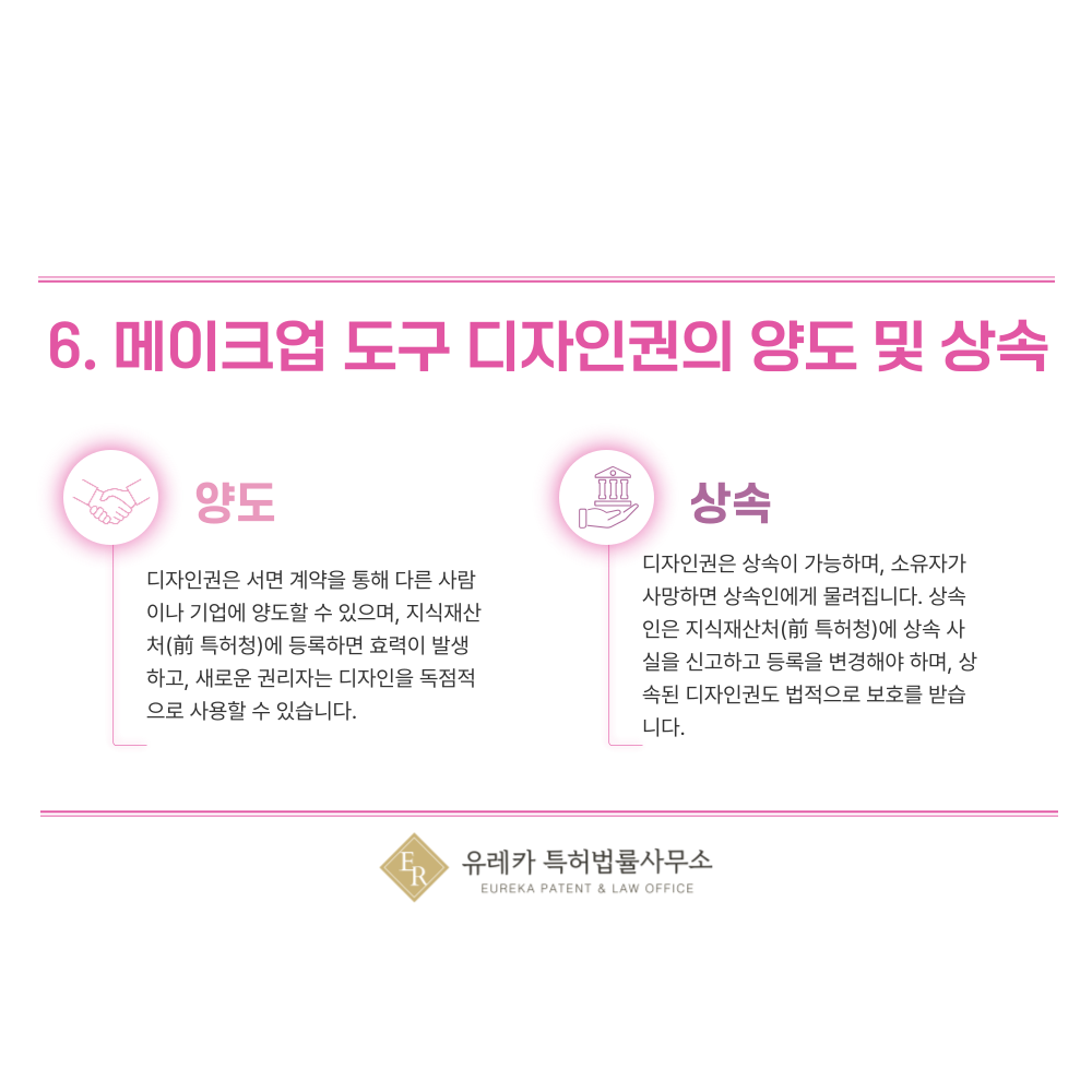 6. 메이크업 도구, 메이크업 미용, 브러시 세트, 퍼프, 스펀지, 픽서, 팔레트 디자인권의 양도 및 상속