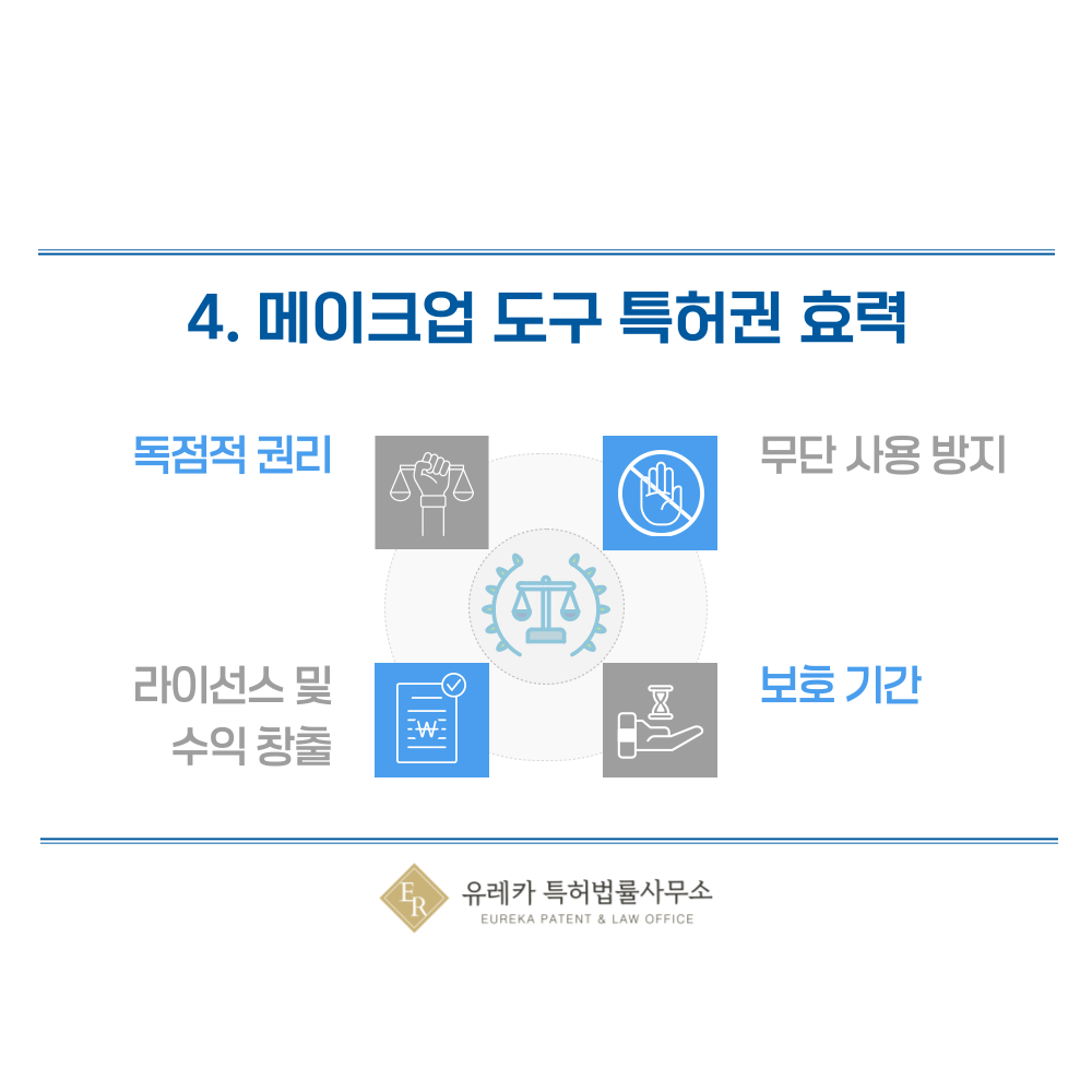 이를 통해 메이크업 도구나 화장품 용기 기술은 모방으로부터 보호되고, 브랜드 경쟁력도 강화됩니다.