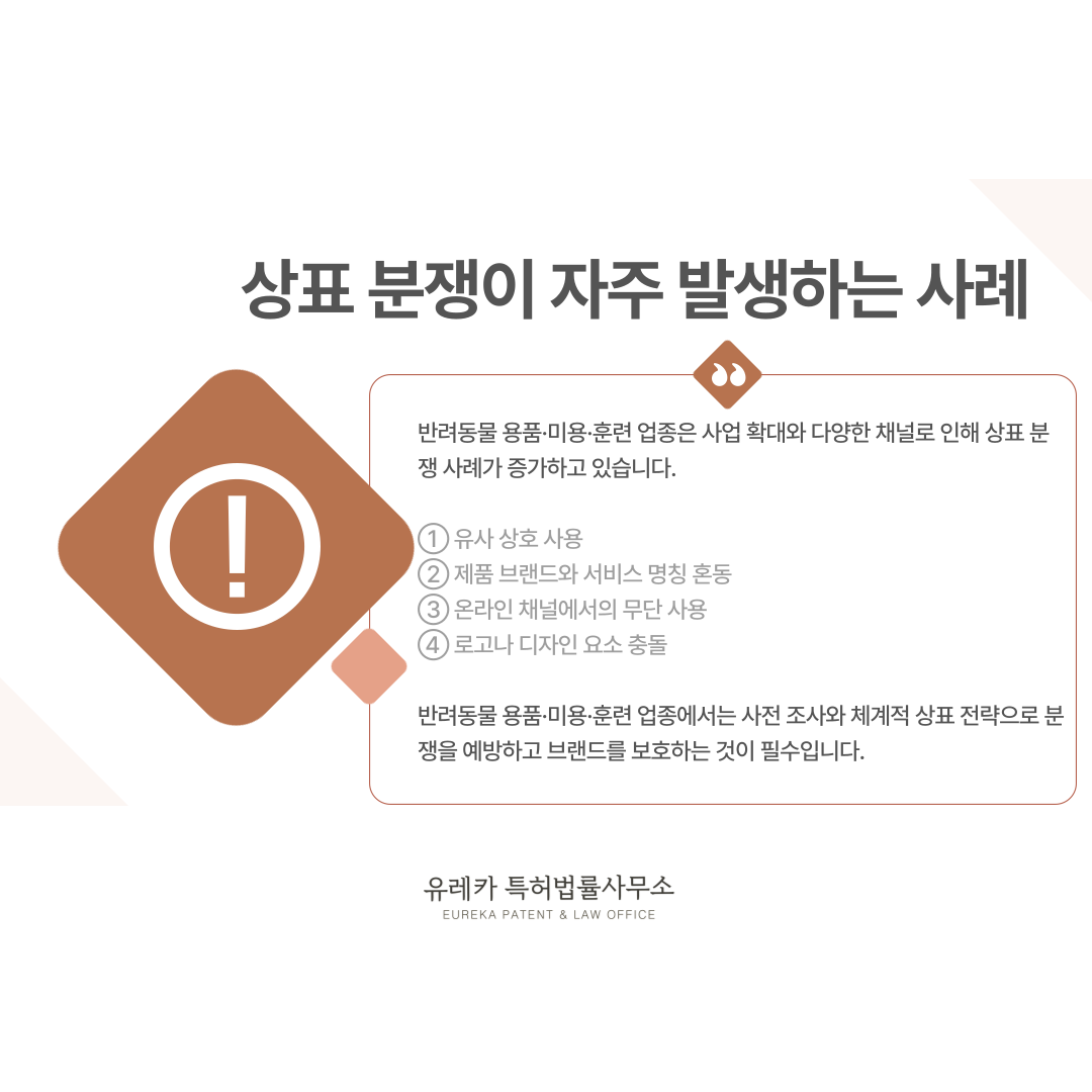 반려동물 용품·미용·훈련 업종에서는 상표 분쟁 사례가 점점 늘어나고 있습니다.