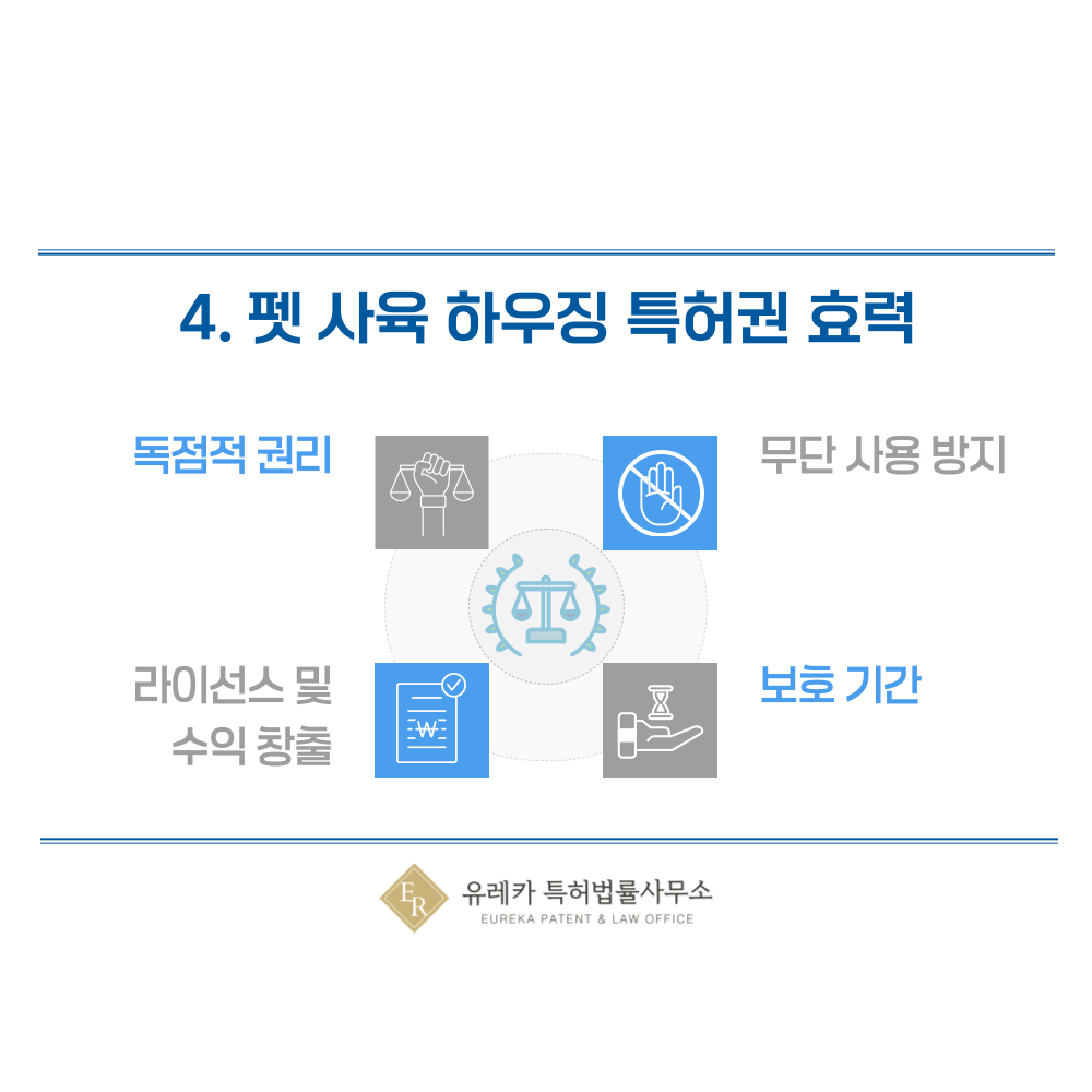반려동물용 가구, 고양이 가구, 강아지 가구, 새장, 파충류 사육장, 어항, 수족관 기술이 특허로 등록되면 출원인은 해당 기술을 독점적으로 사용할 수 있는 권리를 가집니다.