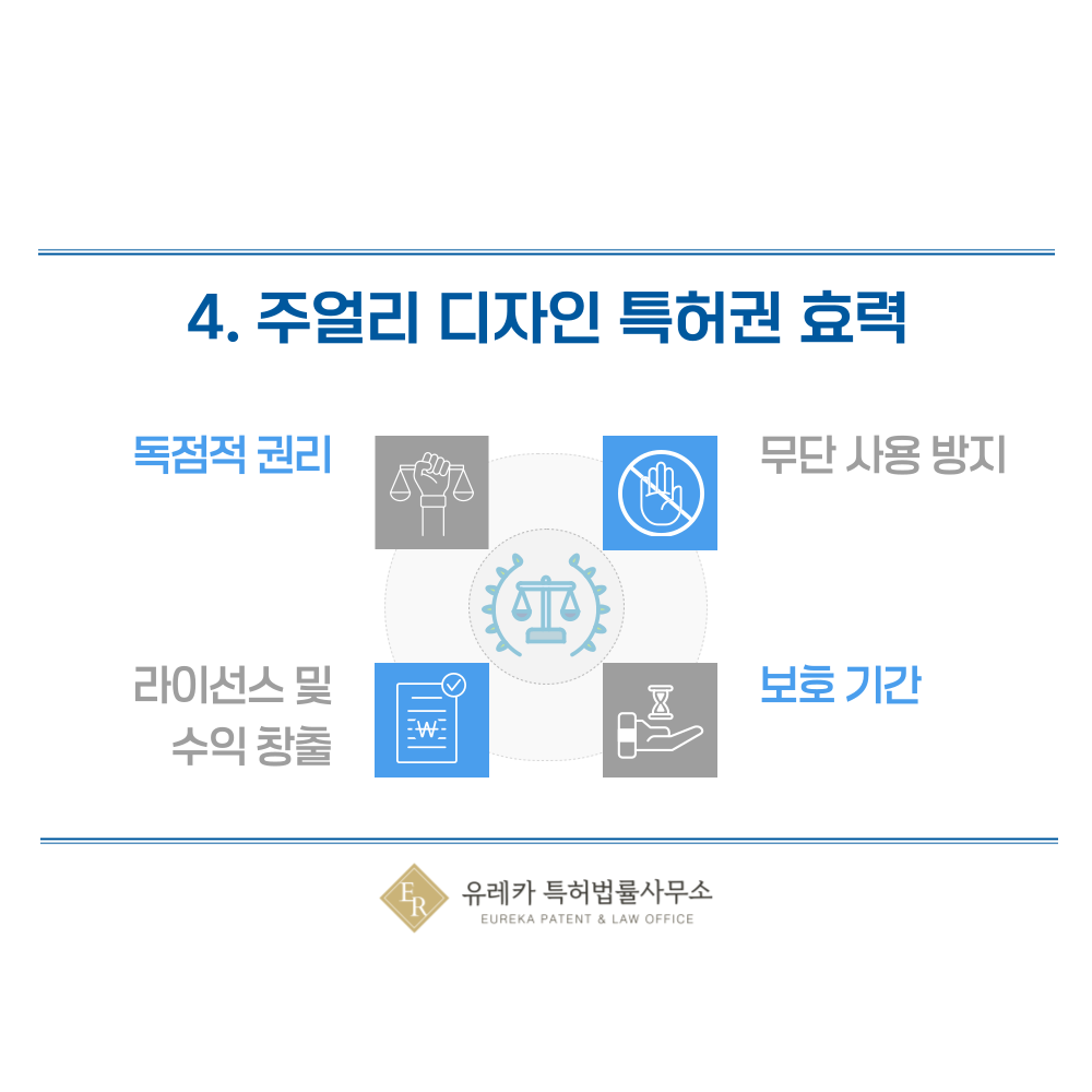 4. 주얼리 디자인, 반지, 목걸이, 팔찌, 귀걸이, 펜던트, 체인, 커프 특허권 효력
