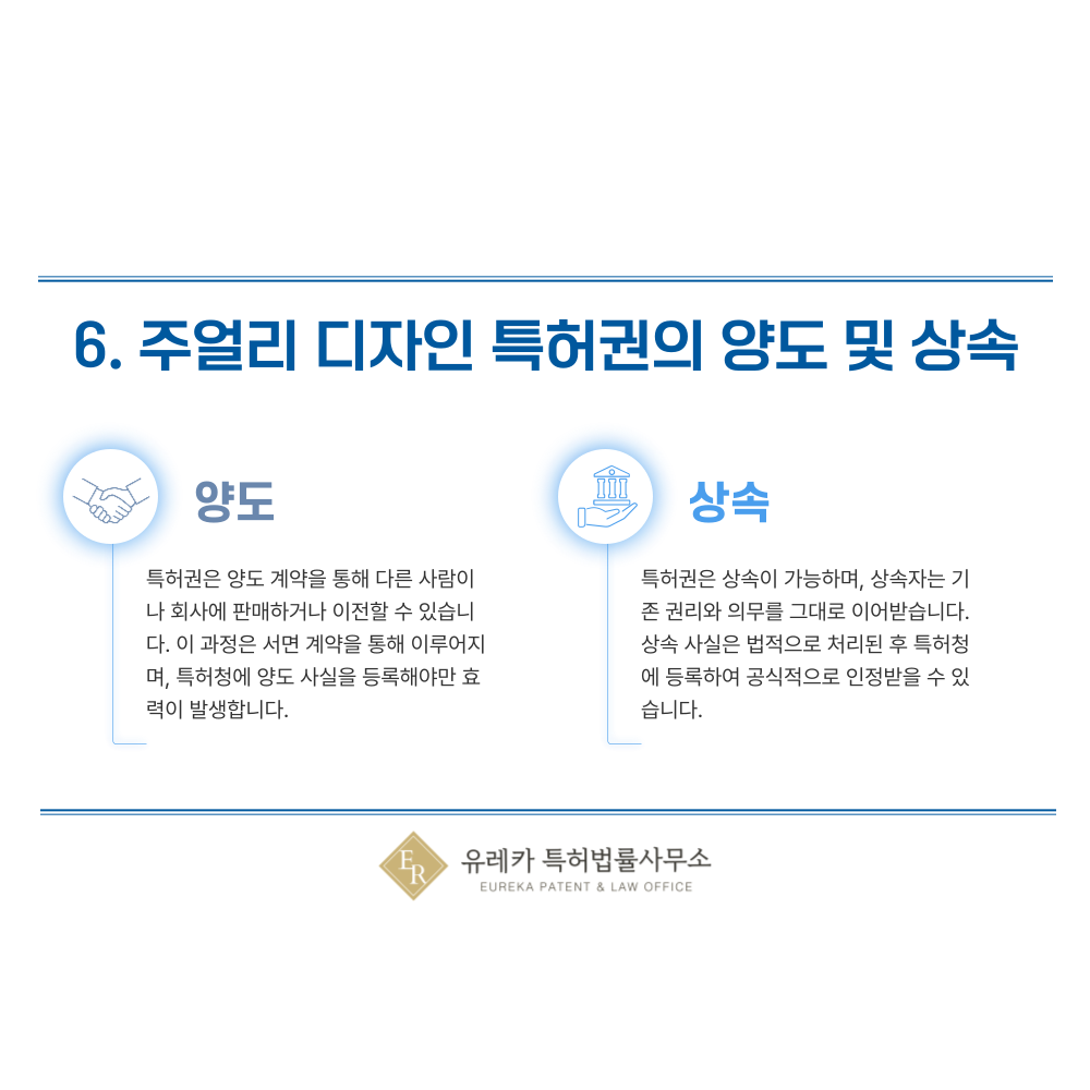 6. 주얼리 디자인, 반지, 목걸이, 팔찌, 귀걸이, 펜던트, 체인, 커프 특허권의 양도 및 상속