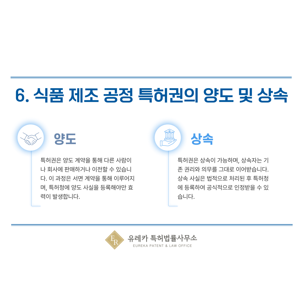 6. 식품 제조 공정, 발효, 추출, 숙성 공정 특허권의 양도 및 상속