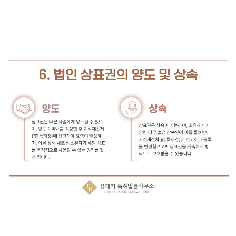 즉, 법인 상표권은 사라지는 것이 아니라 다음 운영 주체에게 이어질 수 있는 자산입니다.