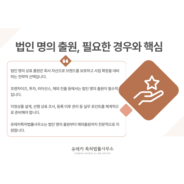 법인 명의 상표 출원은 단순 등록이 아니라 사업 전략의 일부입니다.