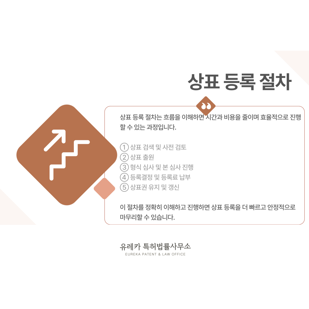 상표 등록 절차는 처음 보면 복잡해 보이지만 흐름을 이해하면 비교적 명확하게 정리할 수 있습니다.