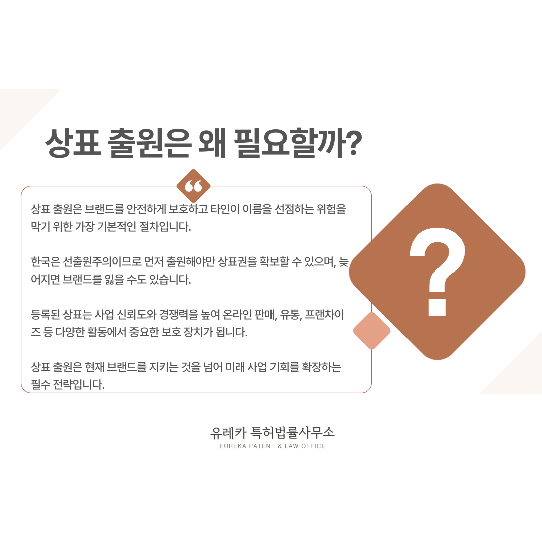 상표 출원은 단순 행정 절차가 아니라 브랜드의 미래를 설계하는 과정입니다.