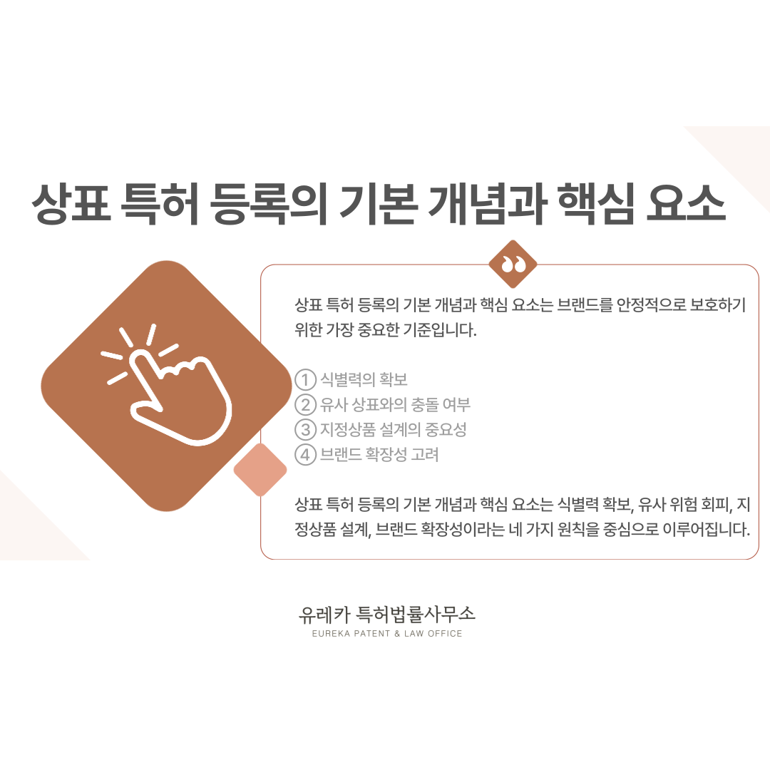 상표 특허 등록의 기본 개념과 핵심 요소는 브랜드를 안정적으로 보호하기 위한 가장 중요한 기준입니다.