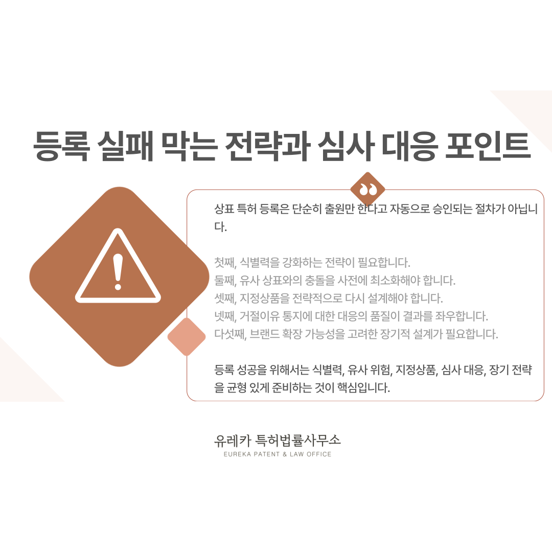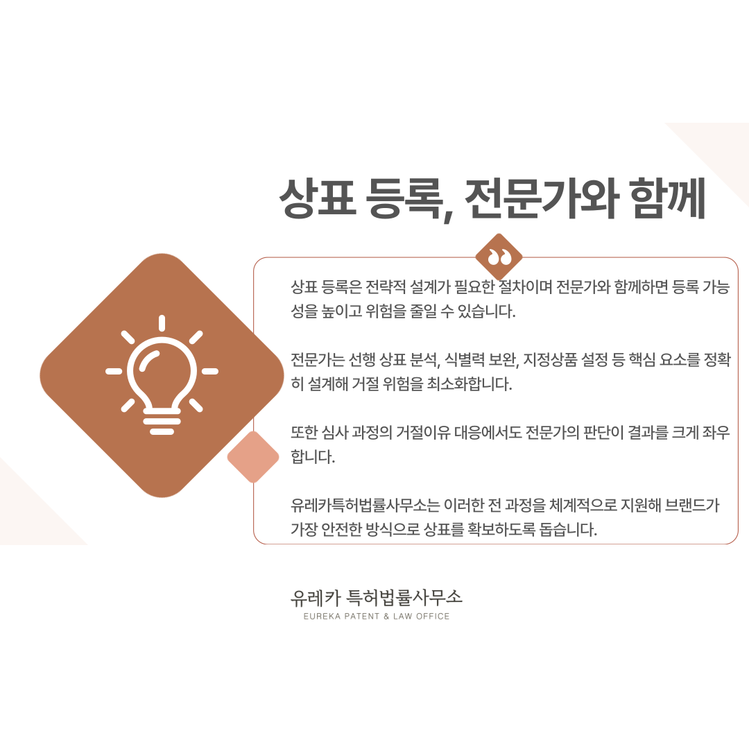 상표 등록은 단순히 서류를 제출하는 절차가 아니라 전략적으로 설계해야 하는 과정이기 때문입니다.
