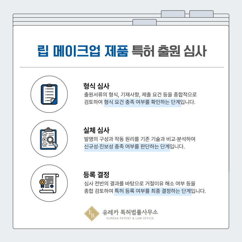 색조화장품, 립메이크업, 립제품 특허는 출원 후 먼저 형식심사를 받게 됩니다.