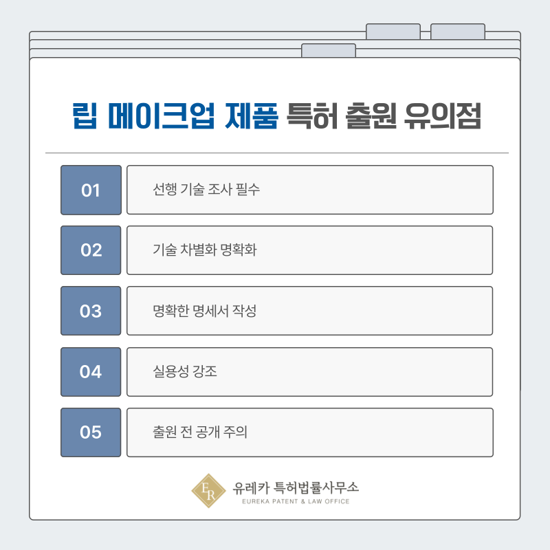 5. 색조화장품, 립메이크업, 립컬러, 입술 화장품, 코스메틱, 립제품 특허 출원시 유의점
