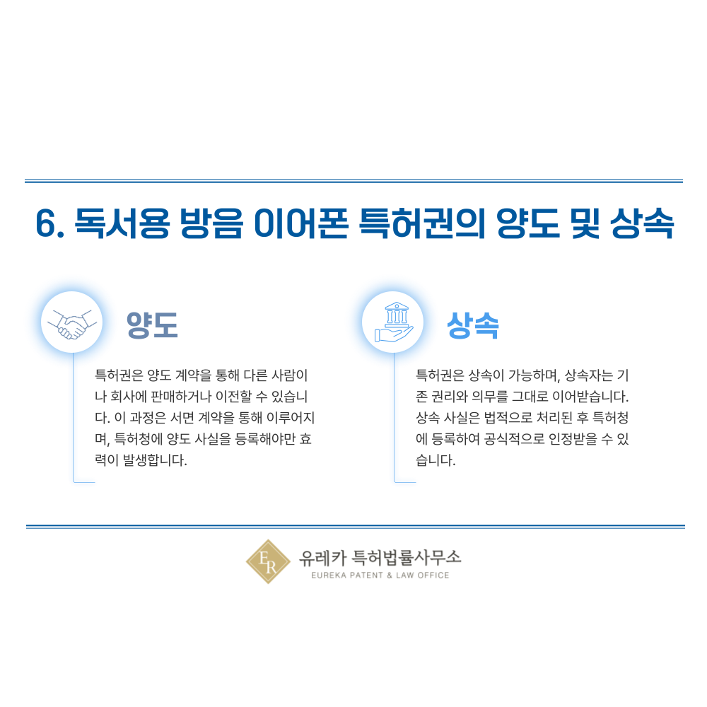 6. 독서용 방음 이어폰, 소음 차단 독서용 이어폰 특허권의 양도 및 상속