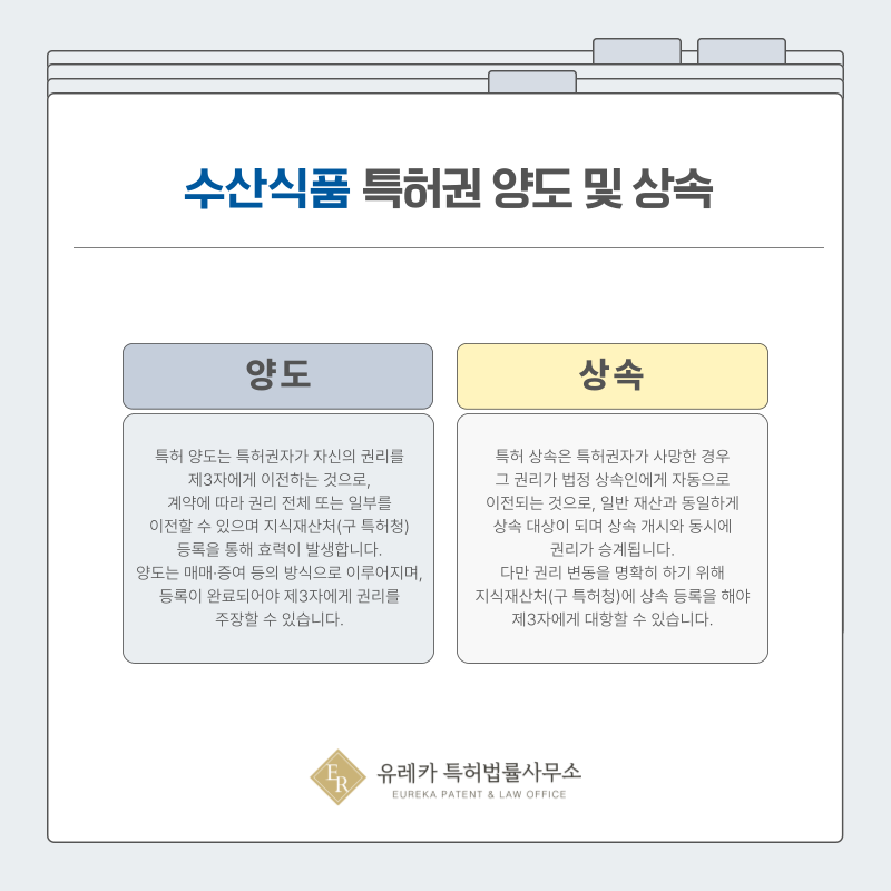 6. 수산식품, 수산물, 어패류, 해산물, 수산가공품, 건조 수산물 특허권의 양도 및 상속