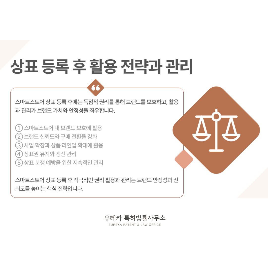 스마트스토어 상표 등록 후 권리 활용과 관리는 브랜드를 지키는 핵심 전략입니다.
