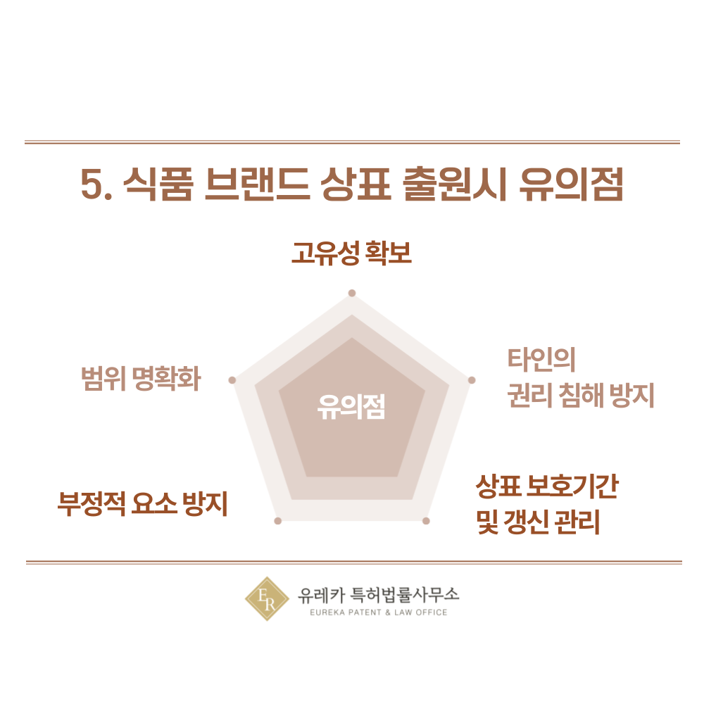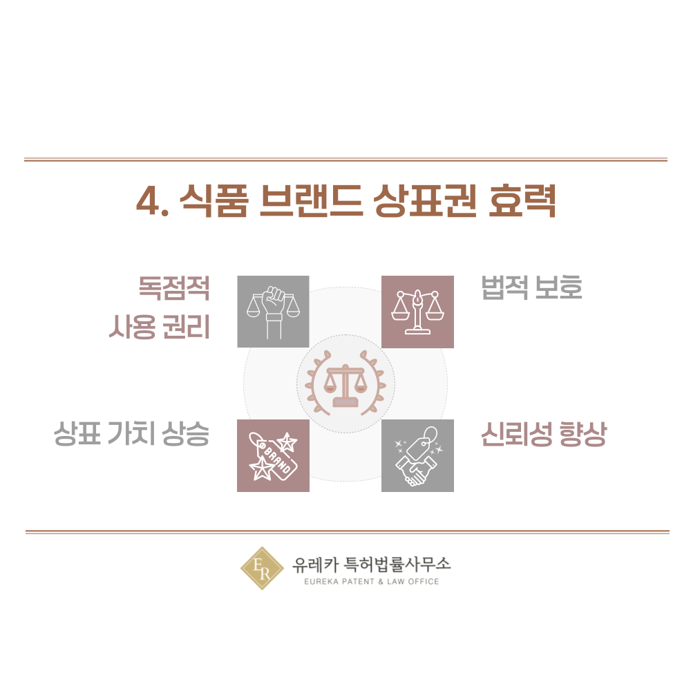 특히 식품 분야는 배달·유통·오프라인 매장 등 노출 범위가 넓기 때문에 독점권 확보가 매우 중요한 역할을 합니다.