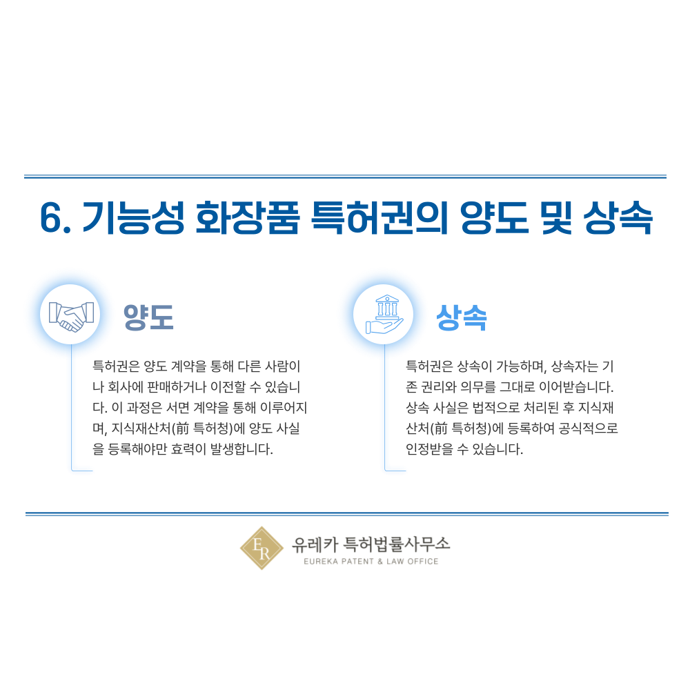 6. 기능성 화장품, 에센스, 세럼, 앰플 조성물, 용기, 패키징 특허권의 양도 및 상속