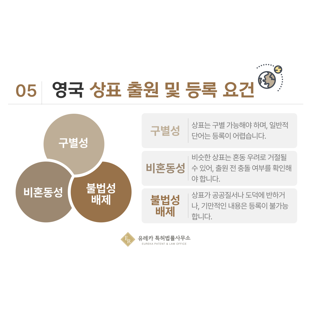 특히 영국은 유럽 시장과 연결성이 높아 초기 단계에서 상표권을 확보해두면 사업 확장에도 도움이 됩니다.
