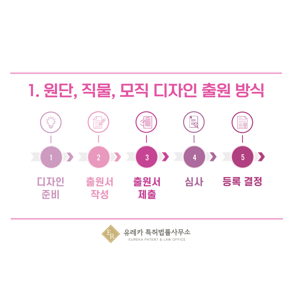 원단·직물·모직 디자인을 출원할 때는 기존에 공개된 패턴과 명확히 구별되는 차별성이 가장 중요합니다.