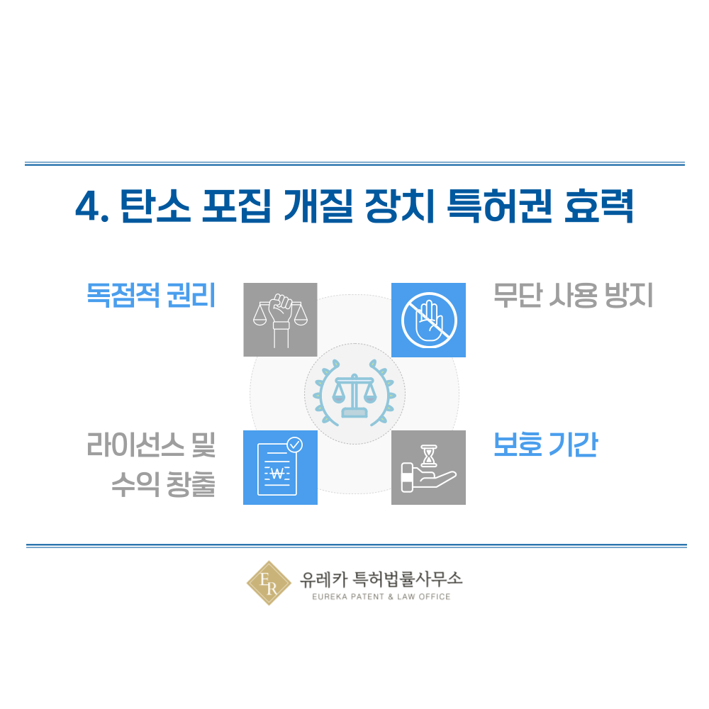 특허권은 단순히 방어적 권리에 그치지 않고 수익 창출 수단이 될 수 있습니다. 권리자는 다른 기업에 사용권을 허락하고 로열티를 받을 수 있으며, 기술 이전이나 공동 개발을 통해 새로운 사업 기회를 확대할 수 있습니다. 특히 CCUS 분야는 친환경 산업에서 수요가 높기 때문에 특허권을 활용하면 장기적인 수익 기반을 마련할 수 있습니다.