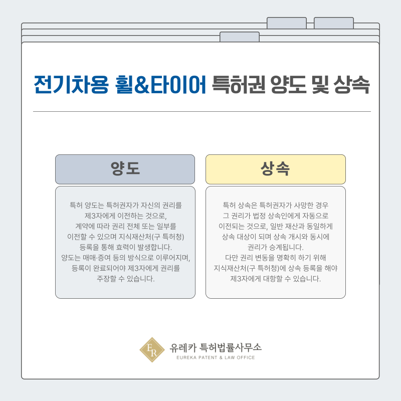 전기차 공력 휠 기술 특허 역시 다른 재산과 동일하게 상속 절차에 따라 승계됩니다.