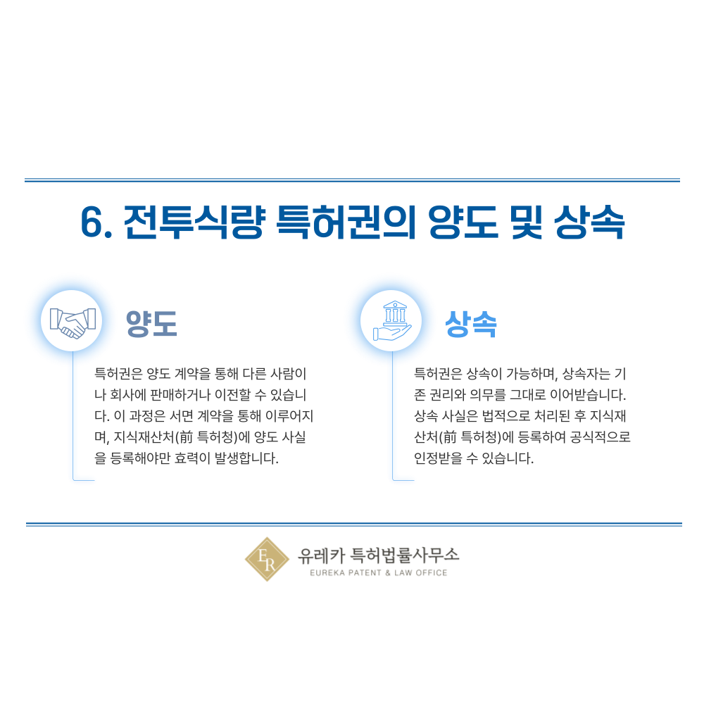 상속 절차를 명확하게 진행하면 향후 권리 분쟁을 예방할 수 있고, 기업이나 가족이 특허 기술을 안정적으로 활용하는 기반도 마련됩니다.