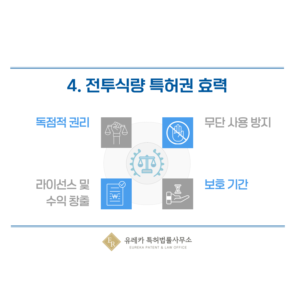 독점적 권리는 연구개발 투자 가치와 제품 차별성을 지키는 가장 중요한 보호 장치입니다.
