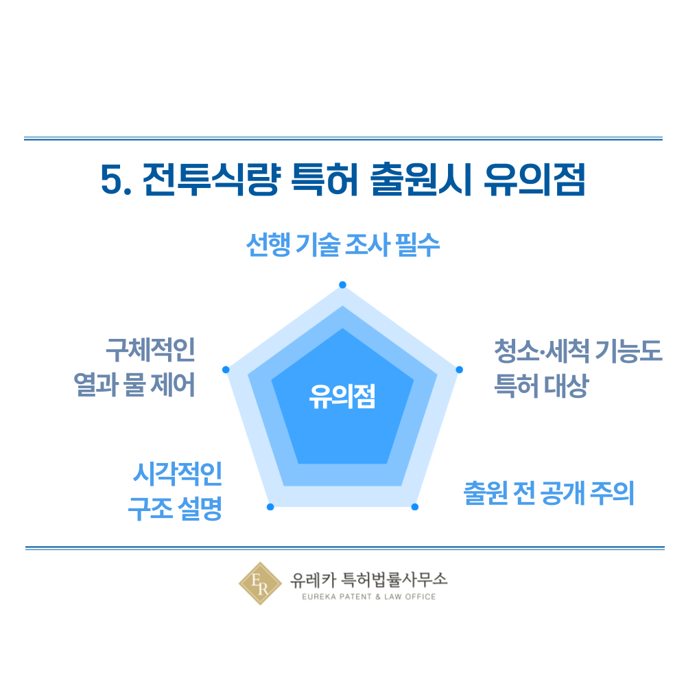 따라서 출원 전에 선행기술을 충분히 조사해 어떤 기술이 이미 알려져 있고, 내 기술이 어떤 점에서 새롭고 차별적인지를 반드시 확인해야 합니다.
