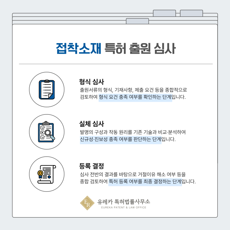 접착, 투명 필름, 테이프, 본드와 같은 특허 출원은 먼저 형식심사를 통해 서류 요건을 확인받게 됩니다.