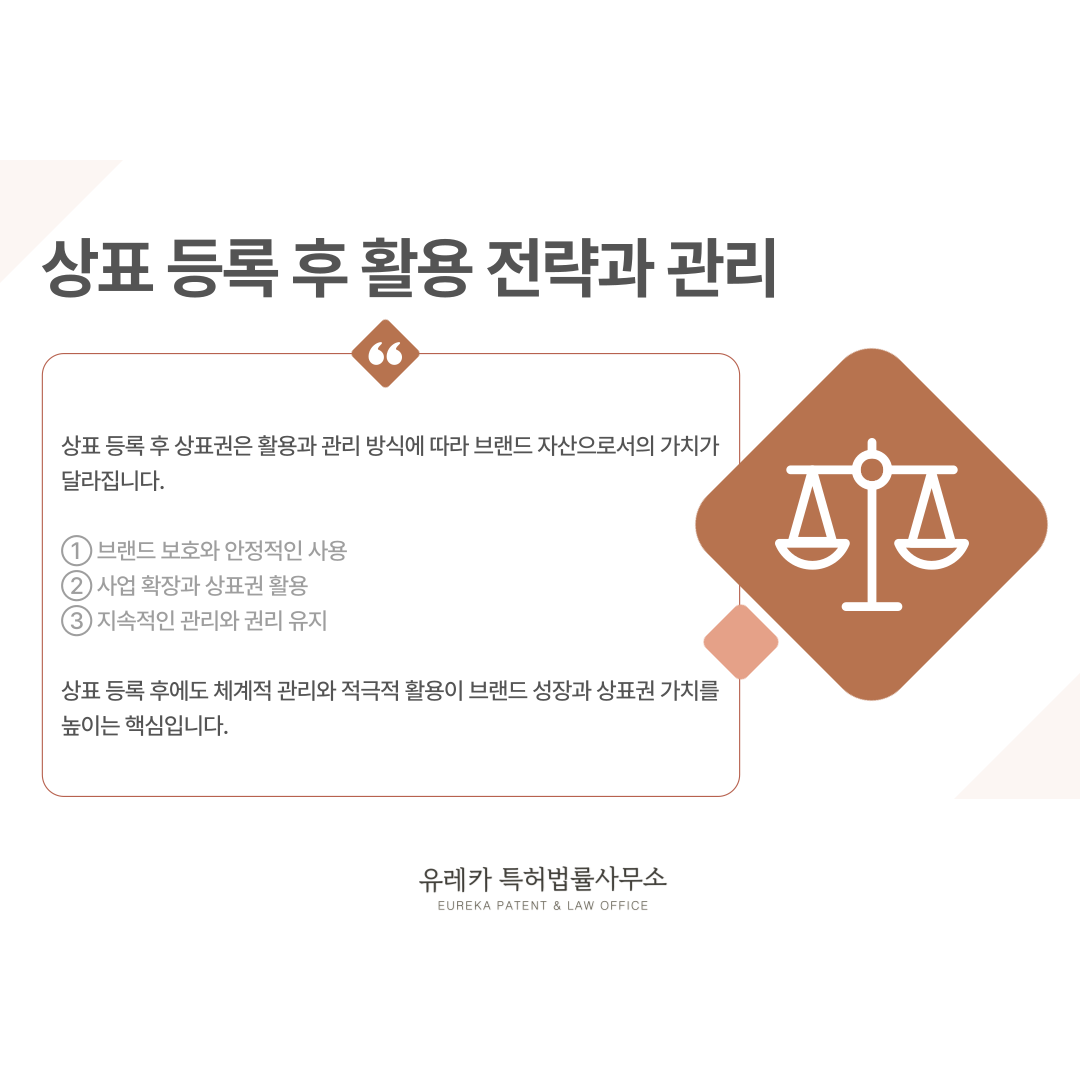 등록 이후 전략적인 접근이 있어야 상표권이 실제 사업 자산으로 기능할 수 있습니다.
