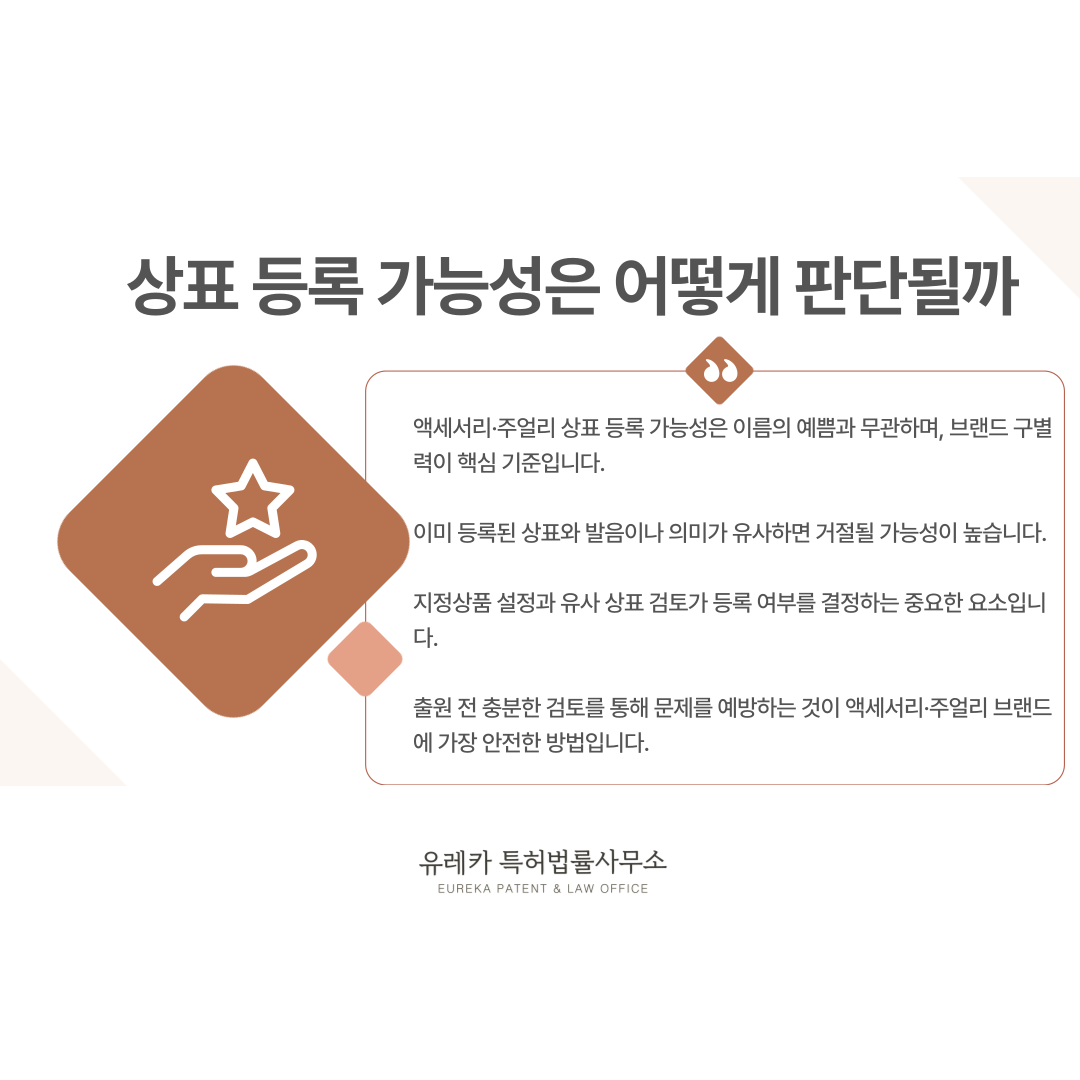 액세서리·주얼리 상표의 등록 가능성은 이름이 예쁜지, 감각적인지와는 전혀 다른 기준으로 판단됩니다.