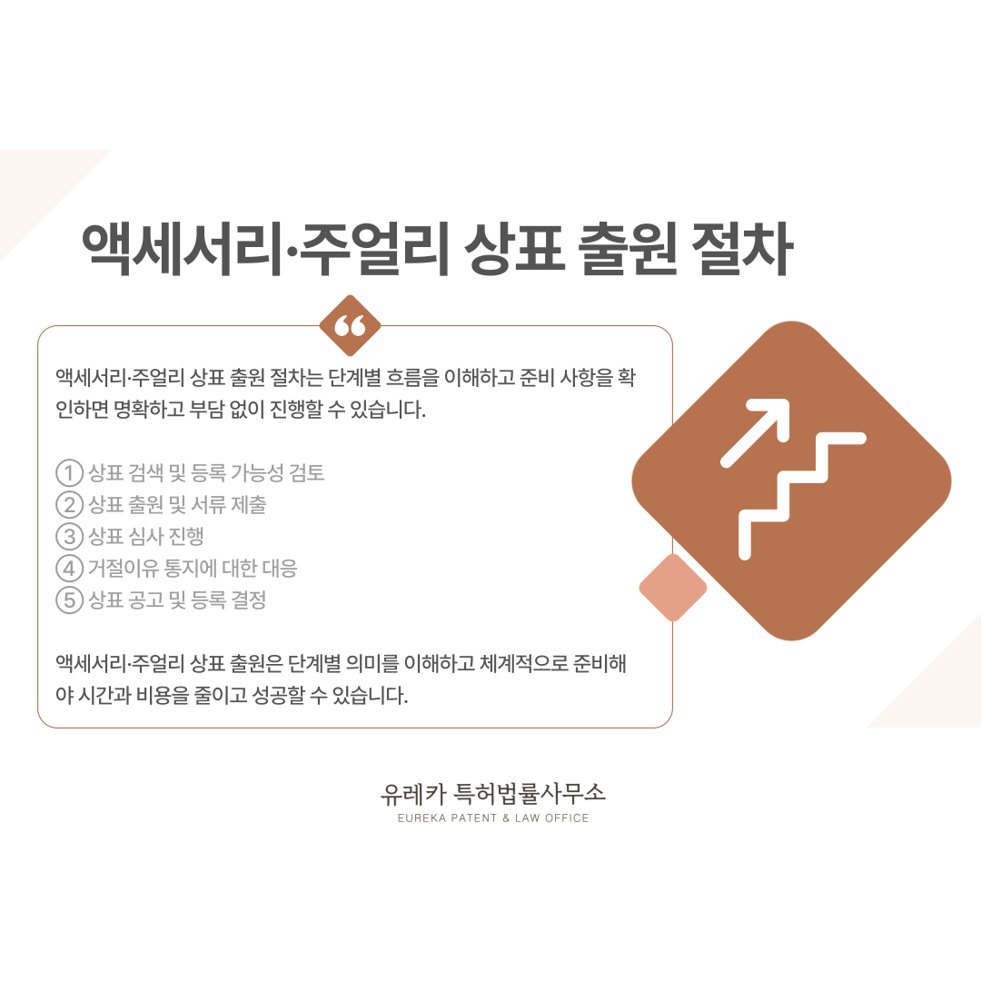액세서리·주얼리 상표 출원 절차는 복잡해 보이지만, 전체 흐름을 이해하면 생각보다 명확합니다.