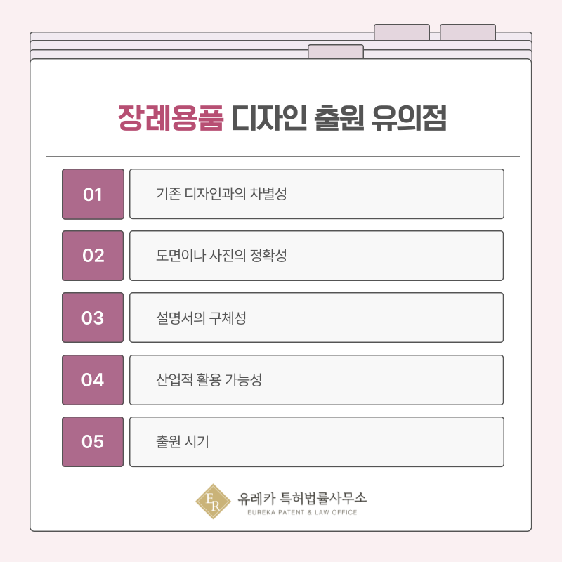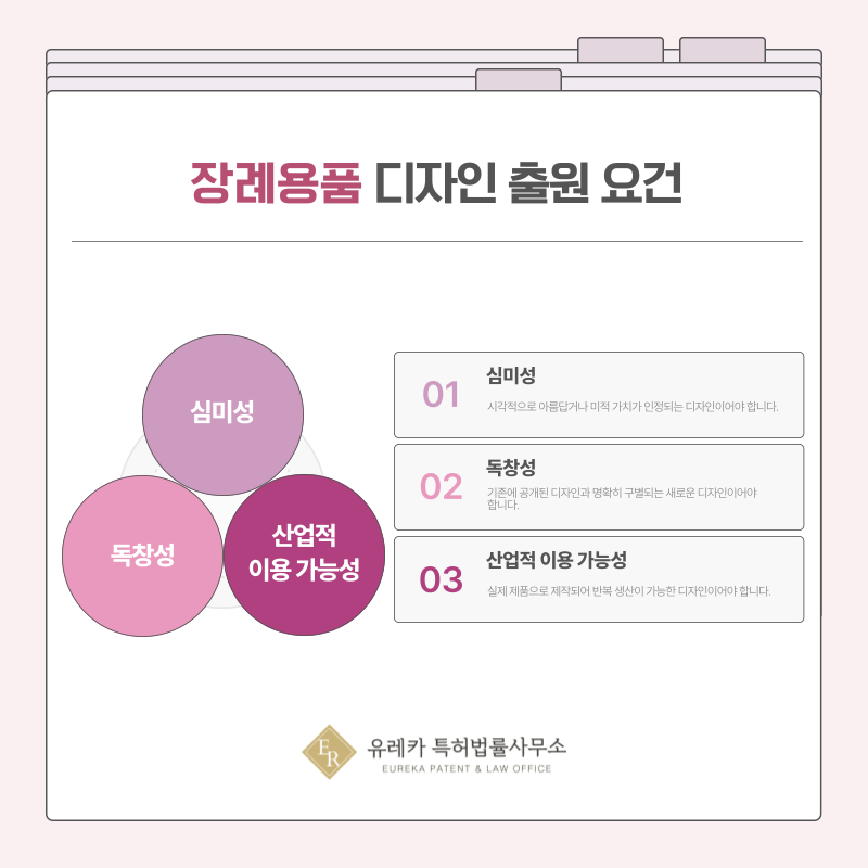 장례용품 분야는 브랜드 신뢰가 중요한 만큼, 디자인권 확보는 경쟁력 유지에 큰 도움이 됩니다.