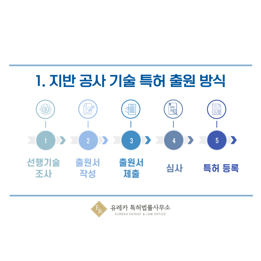 1. 지반 공사 기술, 토공, 성토, 절토, 기초 말뚝 공사 특허 출원 방식