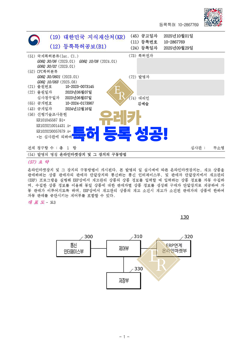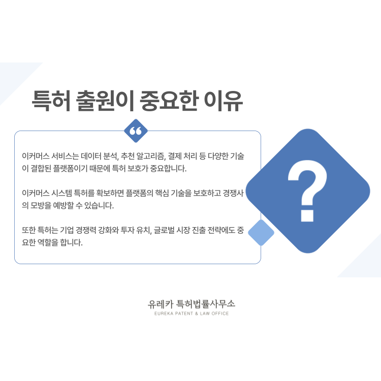 #이커머스특허 #온라인마켓특허 #전자상거래플랫폼특허 #디지털마켓플레이스 #모바일커머스 #플랫폼특허 #온라인쇼핑몰특허 #시스템특허 #PatentRegistration #PatentApplication #특허 #특허출원 #특허등록 #특허권 #특허등록사례 #유레카특허법률사무소