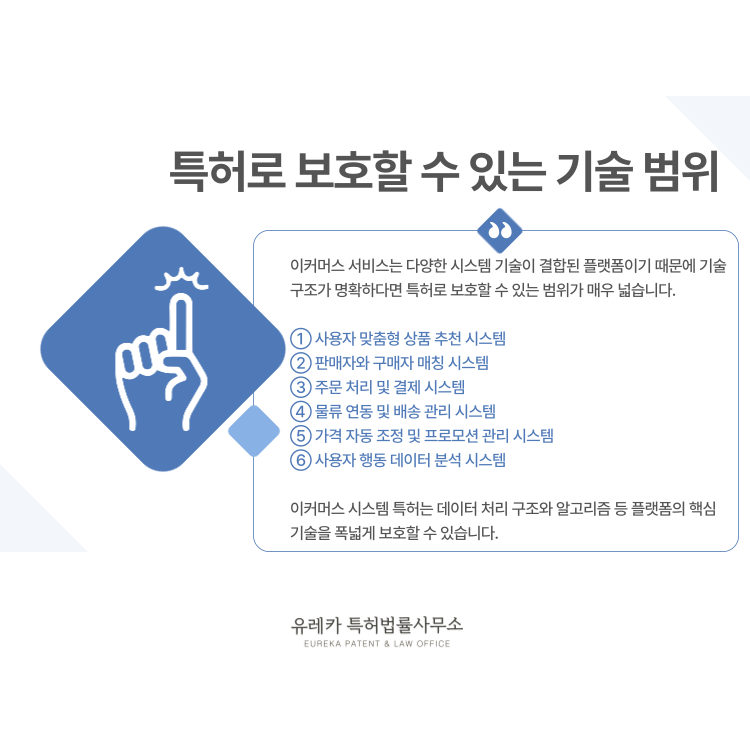 이커머스 시스템 특허로 보호할 수 있는 기술 범위도 매우 넓습니다.
