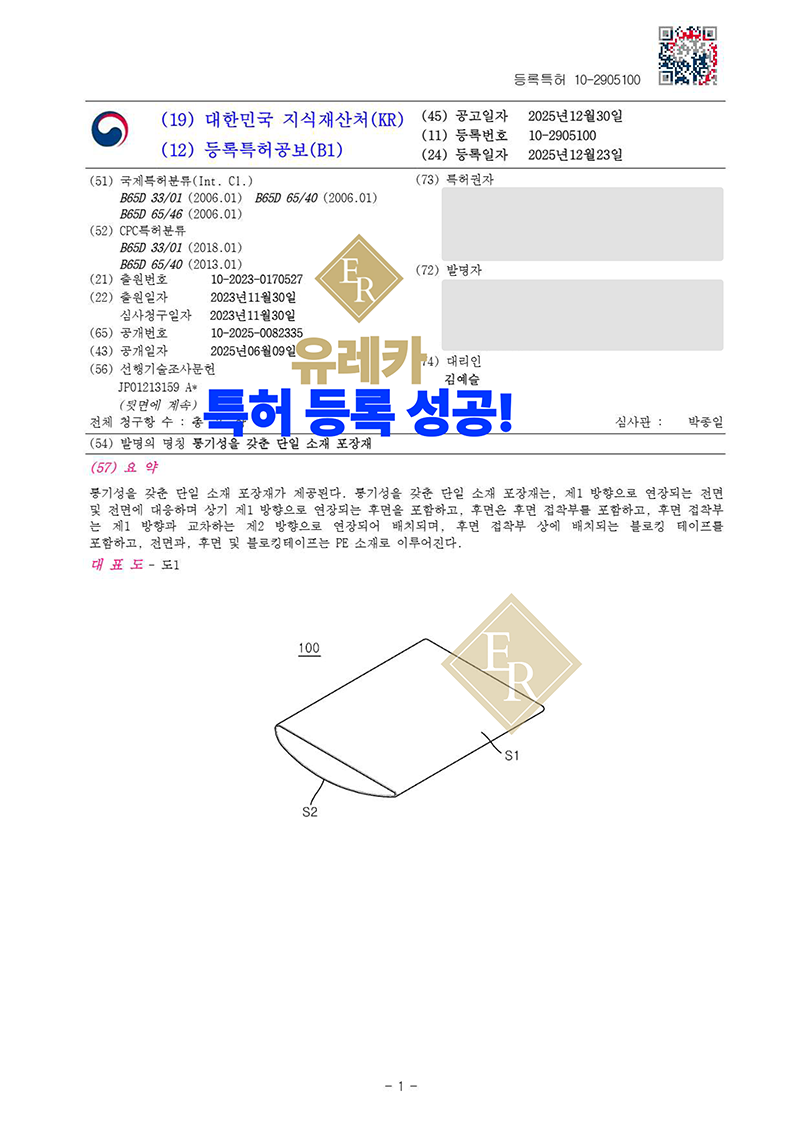 이번 특허는 단일 소재 포장재가 갖기 어려웠던 기능적 한계를 구조와 공정 기술로 해결한 사례로,