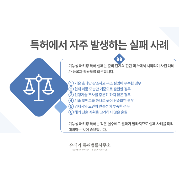 기능성 패키징 특허에서 자주 발생하는 실패 사례는 대부분 준비 단계에서의 판단 미스로 시작됩니다.