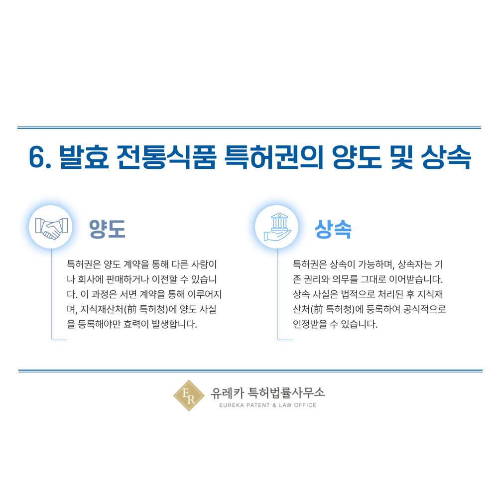 6. 발효 전통식품, 한식, 찌개, 청국장, 된장, 간장, 고추장 특허권의 양도 및 상속