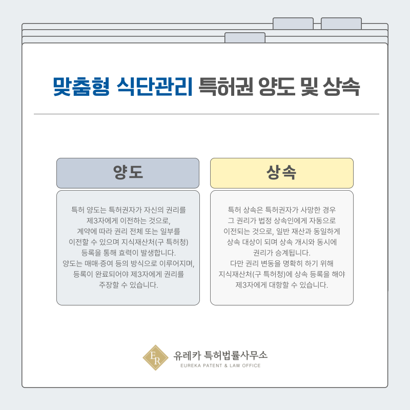 6. 맞춤형 식단관리, 혈당 기반 식단, 실시간 생체데이터 식단, 활동량 기반 식단, 대사 데이터 기반 식단 특허권의 양도 및 상속