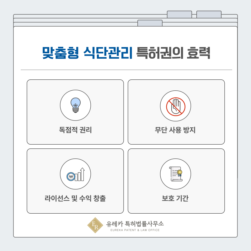 특허가 등록되면 해당 혈당 기반 식단이나 생체데이터 분석 기술을 권리자가 독점적으로 사용할 수 있는 권리가 발생합니다.