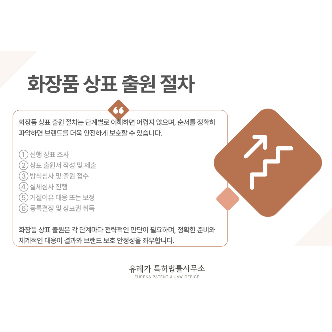 화장품 상표 출원 절차는 막연하게 어렵게 느껴질 수 있지만, 실제 과정은 단계별로 이해하면 훨씬 쉽게 준비할 수 있습니다.