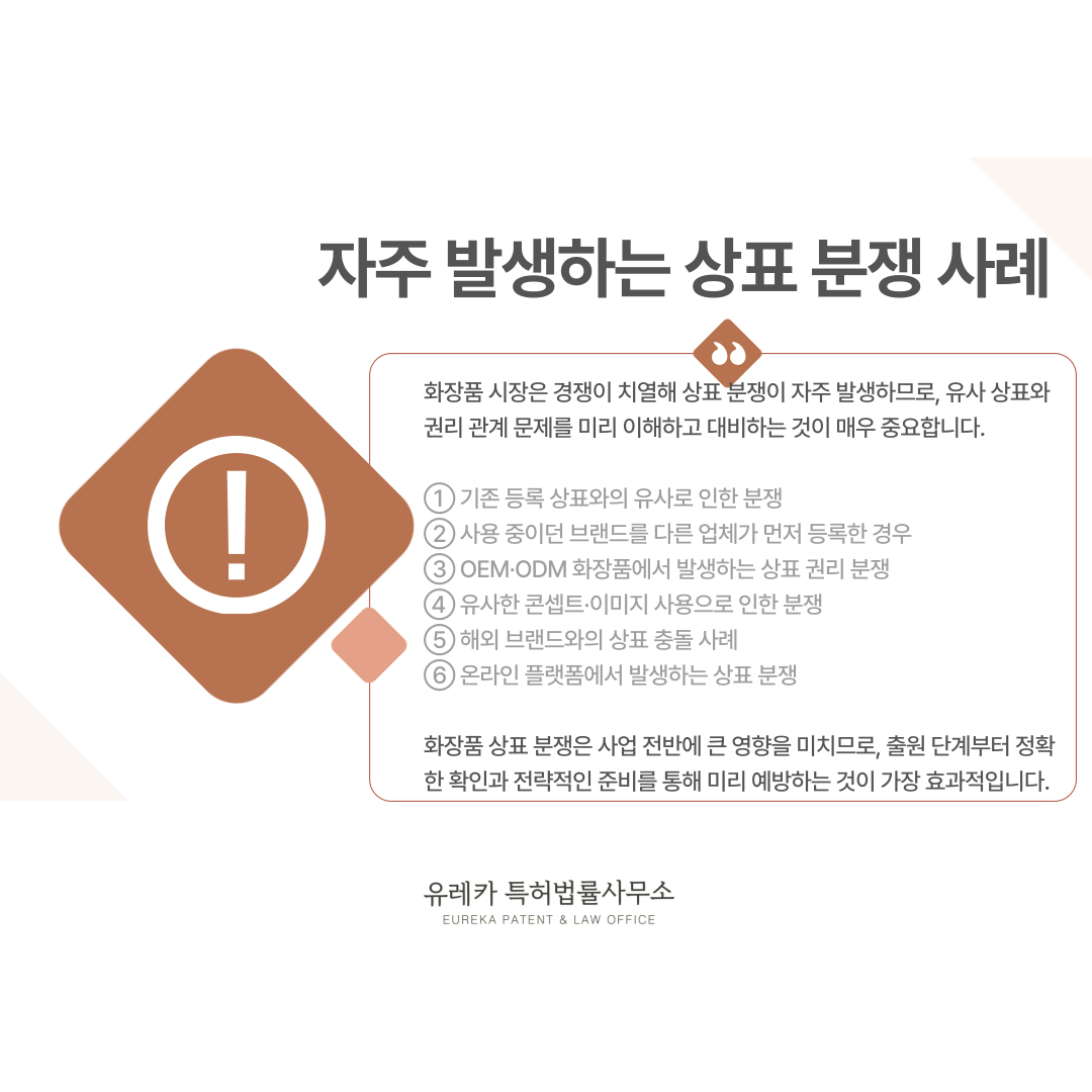 화장품 브랜드 상표 분쟁은 단순한 이름 문제가 아니라 사업 전반에 영향을 주는 중요한 이슈입니다.