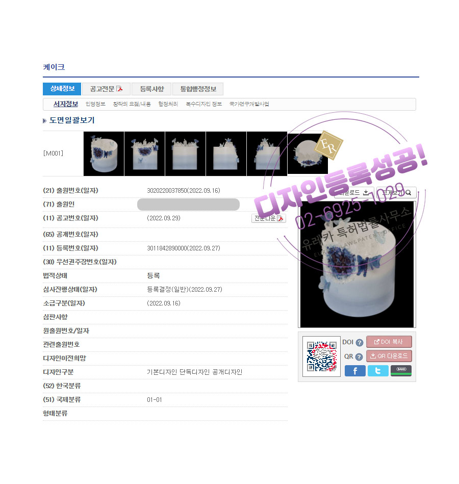 디자인심사를 통과해 최종적으로 케이크 디자인등록되었습니다!