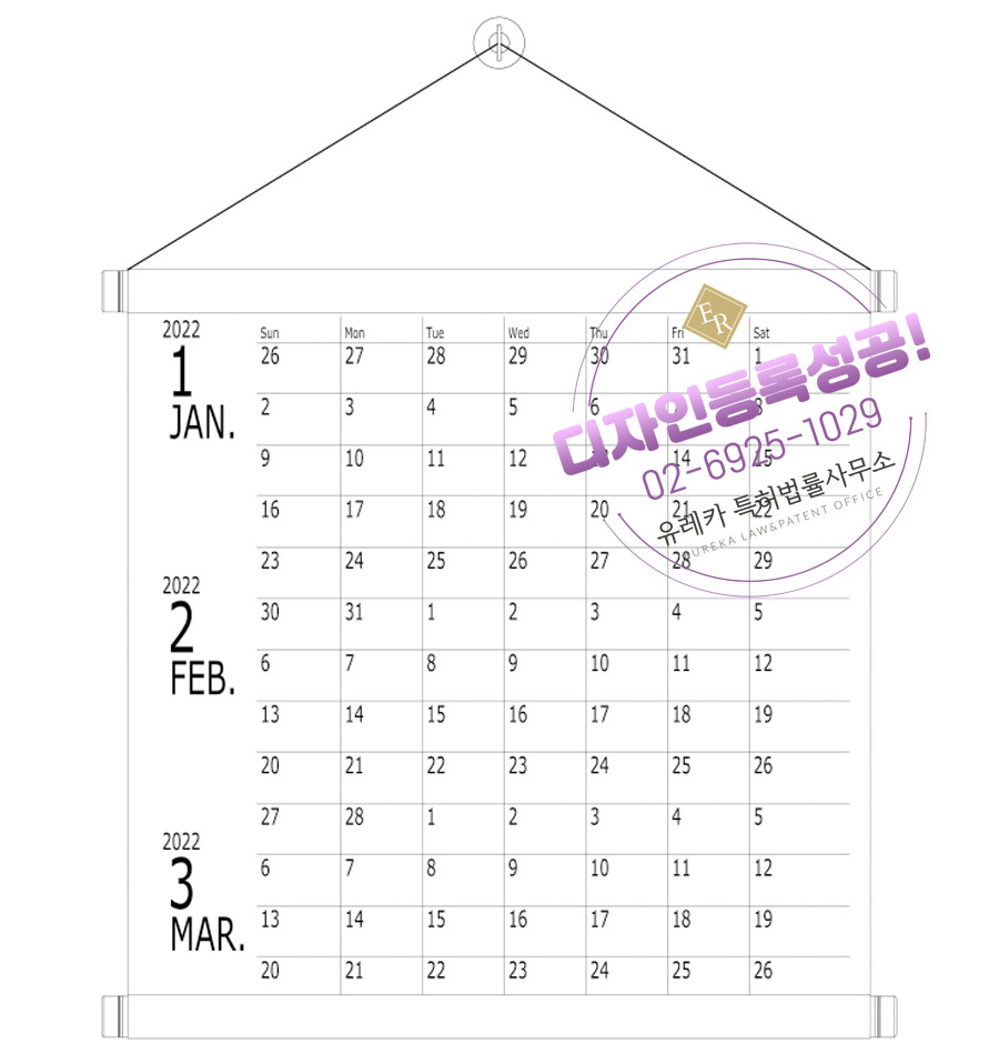 행잉 달력, 달력 걸이, 캘린더에 대한 디자인 출원 의뢰를 유레카에 주셨고