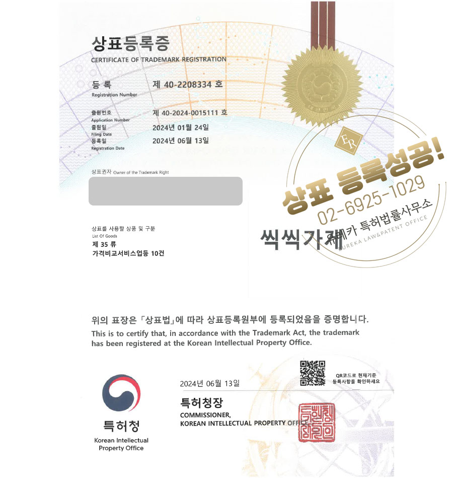 상표심사를 통과하여, 최종적으로 35류 상표등록에 성공하였습니다!