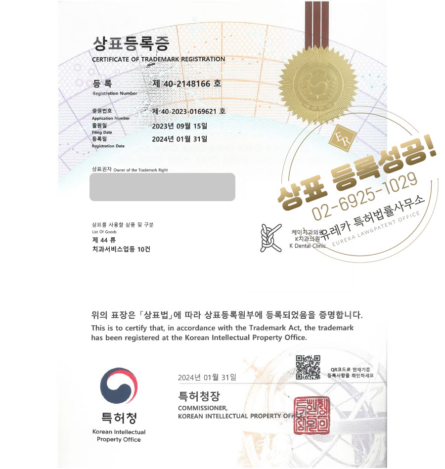 상표심사를 통과하여, 최종적으로 44류 상표등록에 성공하였습니다!